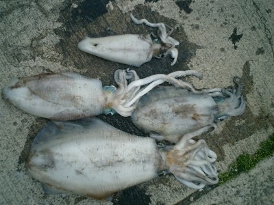 5/27 西坂さん(一文字)夜 アオリイカ〜30cm モンゴウイカ