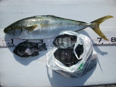 |  8/15 野々上さん(ゴロタ) ヒラマサ75cm チヌ 真鯛