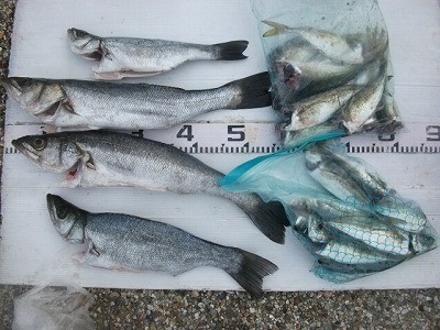 |  9/10川上・竹林さん(ヒーゴ)夜 スズキ10匹 アジ〜30cm