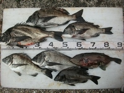 |  12/1 3人(海士島) チヌ〜42cm グレ ウマズラ