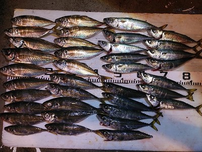 2/24試験釣行2人(近海アジ釣り) アジ〜32cm サバ〜30cm