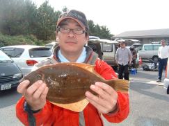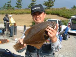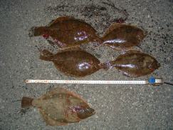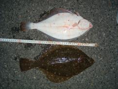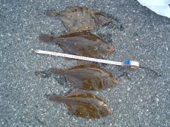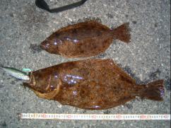 石カレイ〜40cm 、マコカレイ30cm |