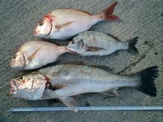 真鯛44cm 石鯛32cm スズキ(夜) |